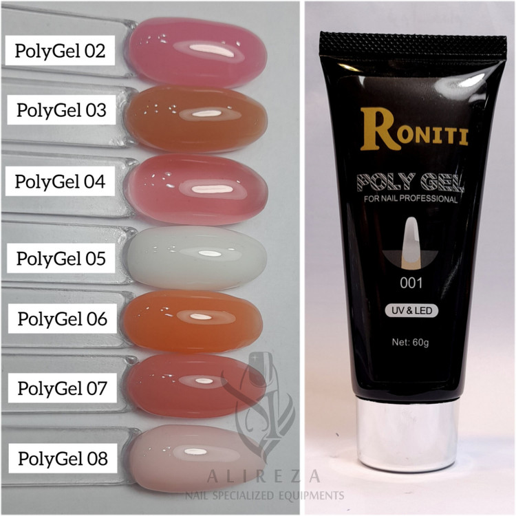 یکی از پرطرفدارترین برندهای پلیژل برند رونیتی میباشد.این محصول با قابلیت انعطاف پذیری و مقاومت بالا مناسب انواع کاشت با قالب و فورمر و تیپ میباشد. درصد پودر و ژل متناسب است. قیمت عالی و کیفیت درجه یک این پلیژل سالانه تعداد متقاضی بالایی جذب میکند